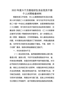 2023年“迎盛会、铸忠诚、强担当、创业绩”主题教育专题组织生活对照检查材料(个人)根据党委《关于开好2023年“迎盛会、铸忠诚、强担当、创业绩”主题教育专题组织生活会通知的要求》,党支部班子集体认真学习了习近平总书记在党的全会和庆祝中国共产党成立100周年大会、《中国共产党党章》和各项规章制度以及《党章》《关于新形势下党内政治生活的若干准则》《中国共产党党内监督条例》。聚焦思想、学习工作、生活等四个方面。从思想、学习、纪律和作风上查找和分析自身存在的问题,并提出整顿措施。现将个人对照检查材料如下:一、查摆出的突出问题(一)思想方面。很多时候不能以身作则,没有做到不仅在学习上、工作上要有优异的...
