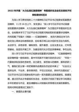 2022年开展大力弘扬红旗渠精神专题组织生活会党支部班子对照检查材料范文检视剖析材料发言提纲【关注抖