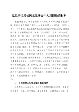 党组书记局长民主生活会个人对照检查材料根据市纪委、市委组织部《关于认真开好2022年度党和国家机关党员领导干部民主生活会的通知》(项组〔2022〕4号)文件要求,我认真做好民主生活会的各项准备工作,紧紧围绕“强化创新理论武装,树牢‘四个意识’,坚定‘四个自信’,坚决做到‘两个维护',勇于担当作为,以求真务实作风坚决把党中央决策部署落到实处"这一主题,深入学习了习近平新时代中国特色社会主义思想和党的十九大精神,认真研读了《习近平谈治国理政》第一卷和第二卷、《习近平新时代中国特色社会主义思想三十讲》等,重点学习了习近平总书记关于加强党的政治建设,做到忠诚干净担当,坚决贯彻落实党中央决策部署,全面推...