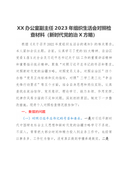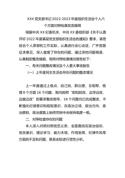 XXX党支部书记2022-2023年度组织生活会个人六个方面对照检查发言提纲(全文2687字)