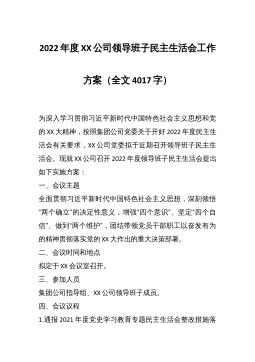 2022年度XX公司领导班子民主生活会工作方案(全文4017字)