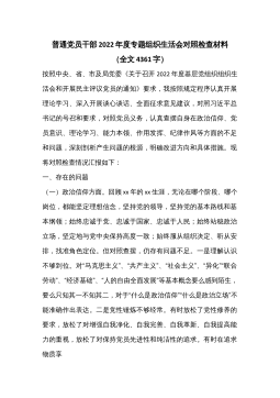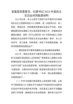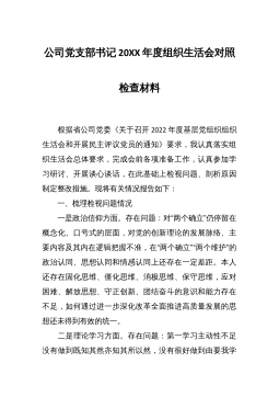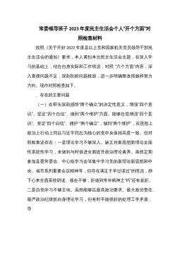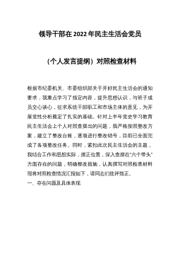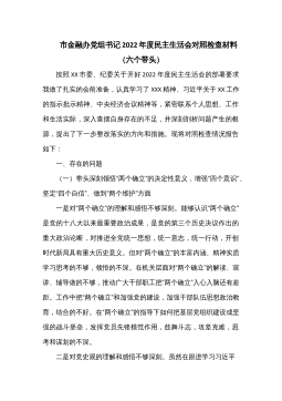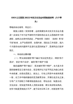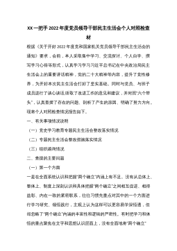 XX一把手2022年度党员领导干部民主生活会个人对照检查材根据《关于开好2022年度党和国家机关党员领导干部民主生活会的通知》要求,会前,本人采取集中学习、交流探讨、个人自学、撰写学习心得等形式,认真学习学习习近平总书记在中央政治局民主生活会上的重要讲话精神,党的二十大精神等内容,提升了党性修养,为开好本次民主生活会打好了坚实基础。同时与党员、与班子成员进行了谈心谈话,听取了改进工作的意见和建议,并对照“六个带头”,认真查摆了存在的问题、剖析了产生的原因、明确了努力方向。现将个人对照检查情况报告如下。一、有关事项情况说明(一)党史学习教育专题民主生活会整改落实情况(二)专题民主生活会整改措施落...