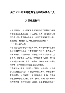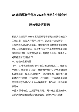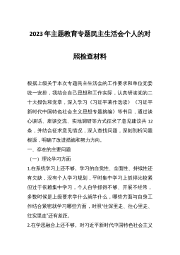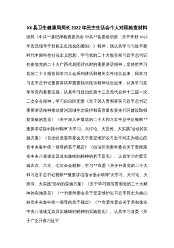 2022年度组织生活会六个方面党员干部个人对照检查材料(政治信仰、党员意识、理论学习、能力本领、作用发挥、纪律作风)按照2022年组织生活会的工作部署,本人认真学习了《党的二十大报告学习辅导百问》《二十大党章修正案学习问答》内容,深入领会习近平新时代中国特色社会主义思想,对照党员义务,全面查找政治信仰、党员意识、理论学习、能力本领、作用发挥、纪律作风等方面的不足和问题,剖析原因,明确今后工作方向和目标措施,现对照检查如下。一、查摆的问题(一)在政治信仰方面一是理想信念方面不够坚定。一直坚持把学习习近平总书记系列重要讲话和治国理政新理念新思想新战略作为政治理论学习的重中之重,凡中央和省、市委召开...