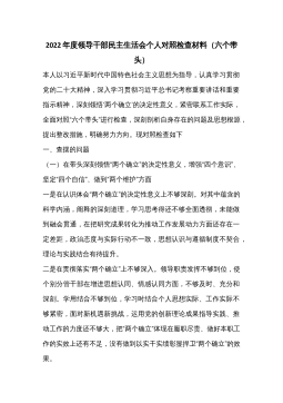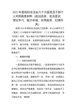 2022年度组织生活会六个方面党员干部个人对照检查材料(政治信仰、党员意识、理论学习、能力本领、作用发挥、纪律作风)