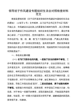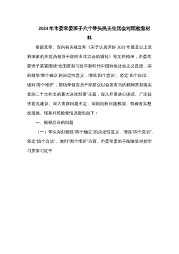 县长2022年度专题民主生活会“六个带头”对照检查发言材料按照这次民主生活会的有关要求,我在会前认真学习的基础上,深入开展谈心谈话,广泛征求意见建议,并联系自身思想和工作实际,紧紧围绕“带头做到‘两个维护’、带头用习近平新时代中国特色社会主义思想凝心铸魂、带头坚持和加强党的全面领导、带头坚持以人民为中心的发展思想、带头发扬斗争精神、带头落实全面从严治党政治责任”等六个方面,深入查找了自身存在的问题,深刻剖析思想根源,明确了下步努力方向和整改措施。现将对照检查情况报告如下:一、存在问题及具体表现(一)在带头深刻感悟“两个确立”的决定性意义,增强“四个意识”、坚定“四个自信”、做到“两个维护”方面...