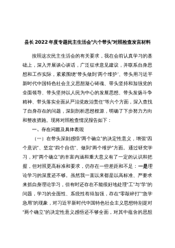 个人县长2022年度专题民主生活会“六个带头”对照检查发言材料