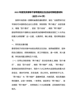 2022年度党员领导干部专题民主生活会对照检查材料(全文6794字)
