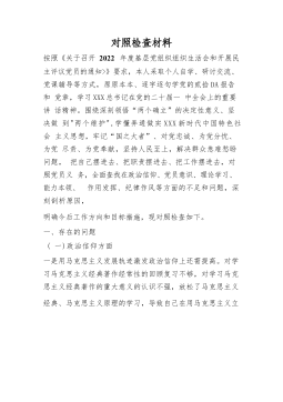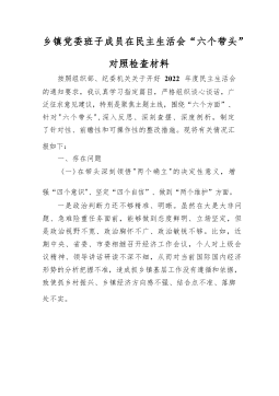 农业农村局党支部班子2022年度七个方面组织生活会对照检查材料形式主义官僚主义方面按照区直机关工委关于认真组织召开2022年度基层党组织组织生活会和民主评议党员工作的相关要求,会前,支部通过集中学习形式,深入学习了党的二十大报告和党章,学习了习近平总书记重要讲话精神,学习了省第XX次党代会以及省委XX届X次全会精神,学习了市委第X次党代会和区委第X次党代会精神。根据组织生活会有关要求,并聚焦本次组织生活会主题,对照党的二十大精神和党章党纪党规,对照"七个方面",深入查找支委班子存在的突出问题,深刻剖析根源,制定整改措施,明确努力方向,现将支委班子对照检查情况汇报如下。一、支部2022年度工作开...