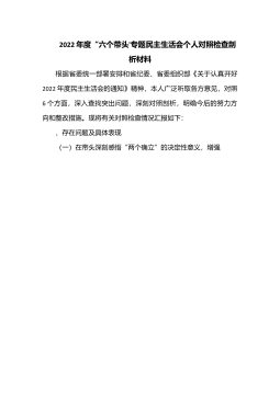 银行主体教育专题生活会个人对照检查材料范文(1)根据《主体教育专题民主生活会方案》的安排,我紧紧围绕会议主题,按照“学思想、强党性、重实践、建新功”的目标要求,扎实做好理论学习、意见征集、谈心谈话、问题查摆等规定动作,并在此基础上认真撰写对照检查材料,为成功开好此次专题民主生活会作了比较充分的准备。现就会前准备及对照检查情况汇报如下,不妥之处,恳请各位领导和同志们批评指正。一、会前准备情况(一)理论学习情况我始终高度重视理论学习,不断强化理论武装,尤其是认真学习习近平新时代中国特色社会主义思想,不断增强“四个意识”、坚定“四个自信”、做到“两个维护”,始终在思想上政治上行动上同以习近平同志为核...