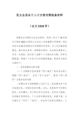 XX城管局党组书记2022年度民主生活会个人对照检查材料(全文5571字)根据区纪委、区委组织部《关于开好2022年D和国家机关D员领导干部民主生活会的通知》要求,结合自身思想和工作实际,认真对照6个重点方面内容,深刻查摆检视,深挖问题根源,明确整改措施。报告如下,恳请同志们提出批评意见。一、聚焦关键重点,查摆突出问题(一)带头深刻领悟“两个确立”的决定性意义,增强“四个意识”、坚定“四个自信”、做到“两个维护”。严明政治纪律和政治规矩,提高政治判断力、政治领悟力、政治执行力,始终在政治立场、政治方向、政治原则、政治道路上同以习××同志为核心的D中央保持高度一致方面。坚持集中学习和个人学习相结...