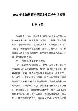 县委常委班子2024年度民主生活会"四个带头"对照检查材料按照《关于开好2024年度党员领导干部民主生活会的通知》要求,常委班子会前通过集体学习、个人自学相结合的方式,深入学习习近平总书记重要讲话重要指示精神,系统研读党章、《中国共产党纪律处分条例》等党内法规,深刻领会进一步全面深化改革的重大意义和战略部署,紧密联系工作实际,广泛征求意见、开展谈心谈话,对照5个方面,深入查找班子存在的问题,深刻剖析症结根源,进一步明确了下步努力方向和整改措施。现将班子对照检查情况汇报如下:一、存在问题及具体表现(一)带头严守政治纪律和政治规矩,维护党的团结统一方面。县委常委班子始终不忘共产党员的初心,时刻肩负...