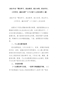 2023年在“理论学习、政治素质、能力本领、担当作为、工作作风、廉洁自律”民主生活会六个方面个人发言材料(二篇)