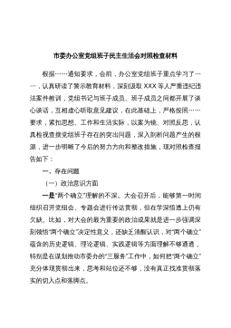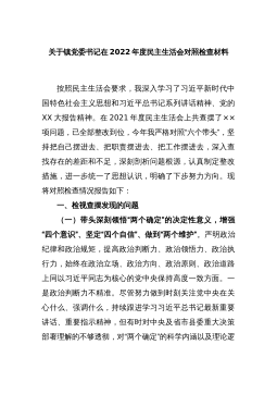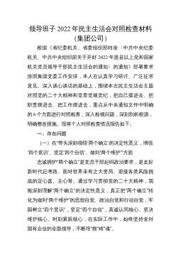 2022年度党员领导干部专题民主生活会对照检查材料(全文6794字)按照中央的统一部署和省委的通知要求,紧扣“全面贯彻习近平新时代中国特色社会主义思想,深刻领悟“两个确立”决定性意义,增强“四个意识”、坚定“四个自信”、做到“两个维护”,团结带领党员干部群众以奋发有为的精神贯彻落实党的二十大作出的重大决策部署”这一主题,认真研究,精心准备,现对照检查如下。一、存在的主要问题委领导班子对标对表中央政治局民主生活会,按照省委要求,坚持把自己摆进去、把职责摆进去、把工作摆进去,逐一对照、深入查摆,存在的问题主要有五个方面。(一)在带头深刻领悟“两个确立”的决定性意义,增强“四个意识”、坚定“四个自信...