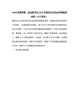 XXX市金融服务局领导班子2022年度民主生活会对照检查材料
