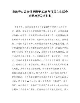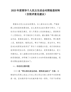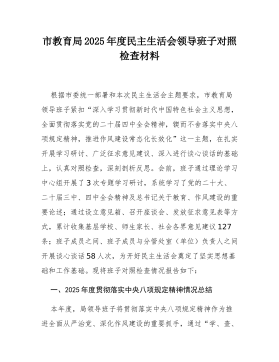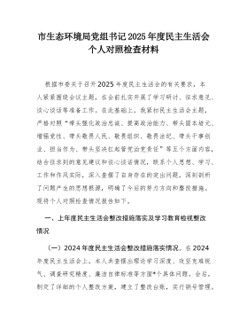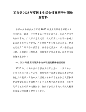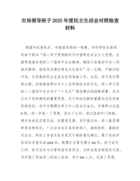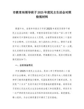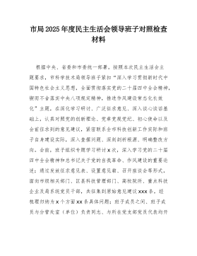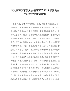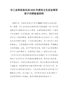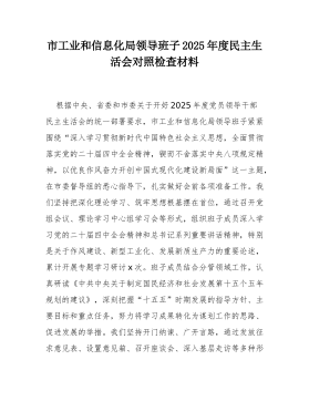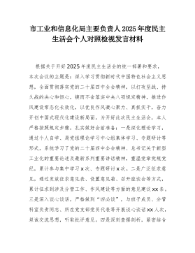 市工业和信息化局主要负责人2025年度民主生活会个人对照检视发言材料根据关于开好2025年度民主生活会的统一部署和要求,本次会议的主题是:深入学习贯彻新时代中国特色社会主义思想,全面贯彻落实党的二十届四中全会精神,以打攻坚战、持久战的决心和恒心,锲而不舍落实中央八项规定精神,推进作风建设常态化长效化,以优良作风凝心聚力、真抓实干,奋力开创中国式现代化建设新局面。为开好此次民主生活会,本人严格按照规定步骤,扎实做好会前准备:一是深化理论学习,通过个人自学、局党组理论学习中心组集体学习、专题研讨等形式,系统学习了党的二十届四中全会精神、总书记关于新型工业化的重要论述及最新系列重要讲话精神,重温党章...