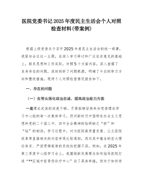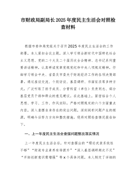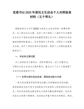 党支部2025年度组织生活会个人对照检查材料汇编(支部书记、组织委员、宣传委员、纪检委员)局党支部书记2025年度组织生活会个人对照检查材料作为局党支部书记,我始终坚持以新时代中国特色社会主义思想为指导,深入学习贯彻党的二十大和二十届四中全会精神,全面落实新时代党的建设总要求,切实履行全面从严治党第一责任人职责。在2025年度组织生活会前,我紧扣会议主题,聚焦“学思想、强党性、重实践、建新功”总要求,通过谈心谈话、征求意见、自查反思等方式,全面检视自身在思想政治、履职尽责、作风建设等方面存在的问题,深刻剖析根源,明确整改方向。现将个人对照检查情况报告如下:一、存在的问题(一)学习贯彻党的创新理...
