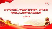 深学笃行党的二十届四中全会精神,实干担当推动康卫生健康事业高质量发展2025年12月前言党的二十届四中全会,是在我国迈上全面建设社会主义现代化国家新征程、向第二个百年奋斗目标进军的关键时刻召开的一次具有里程碑意义的重要会议。全会擘画了未来五年国家发展的宏伟蓝图,明确了前进方向、目标任务和重大举措,为我们奋进新征程提供了根本遵循和行动纲领。作为守护人民群众生命健康的第一线,作为党领导下卫生健康事业的重要组成部分,要把思想和行动统一到党的二十届四中全会精神上来,深入领会和贯彻落实全会对卫生健康作出的重大部署,坚定不移推动高质量发展,积极服务和融入新发展格局,实施健康优先发展战略,持续深化医药卫生体...