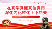 主题党课(含PPT):以大会精神为统领,奋力在新时代新征程中谱写高质量发展新篇章党的二十大,是在全党全国各族人民迈上全面建设社会主义现代化国家新征程、向第二个百年奋斗目标进军的关键时刻召开的一次十分重要的大会,对于我们党在新时代新征程上团结带领全国各族人民全面建设社会主义现代化国家、全面推进中华民族伟大复兴,具有重大的现实意义和深远的历史意义。学习宣贯党的二十大精神,是当前和今后一个时期全党全国的首要政治任务。习主席对学习宣贯高度重视,作出一系列重要指示,省委和市委相继动员部署,迅速掀起了学习宣贯热潮。为提领站位、深化理解,进一步把学习宣贯引向深入,今天我围绕“以党的二十大精神为统领,奋力谱写...