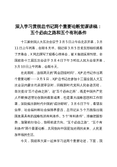 深入学习贯彻总书记两个重要论断党课讲稿:五个必由之路和五个有利条件十三届全国人大五次会议于3月5日上午在北京开幕,3月11日上午闭幕,会期6天半。我记得3月5日党支部组织观看了开幕会,X同志撰写了观看心得体会,被X集团采用刊登。全国政协十三届五次会议于3月4日下午3时在人民大会堂开幕,3月10日上午闭幕,会期6天。在此期间,连续两天的“两会团组时间”,XJP总书记作出两个重要论断——3月5日,XJP总书记在参加十三届全国人大五次会议内蒙古代表团审议时,回顾新时代党和人民奋进历程,首次提出“五个必由之路”。这“五个必由之路”,既是中国共产党人不断推进理论创新的最新成果,也是重大战略思想和工作部署...
