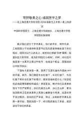 常怀敬畏之心成就医学之梦——在上海交通大学医学院2016级新生入学第一课上的讲话中国科学院院士、上海交通大学副校长、上海交通大学医学院院长陈国强刚才我们进行了开学典礼,你们的学长、同学代表、工程院院士宁光老师和党委书记范先群老师都欢迎了你们现在,我再次以个人的名义,祝贺你们突破“高考”重围,加盟到交大医学院,成为医学院的“小鲜肉”。同时,你们也可能是第一次离开父母过中秋节,也借这个机会,我预祝你们中秋节快乐。下面给大家讲第一课。我用了五星红旗作为我的PPT的开篇。因为,我们都是生在红旗下,长在红旗下。生在红旗下和长在红旗下的我们,最应该做的是什么?应该是也必须是爱国爱校和诚信!承诺是金。刚才你...