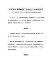 习近平在主题教育工作会议上的讲话要点—学习贯彻习近平新时代中国特色社会主义思想主题教育 2023年4月3日,学习贯彻习近平新时代中国特色社会主义思想主题教育工作会议在北京召开。中共中央总书记、国家主席、中央军委主席习近平发表重要讲话,部署开展主题教育工作,讲话要点如下。※学习目的※ 习近平强调,强国建设、民族复兴的宏伟目标令人鼓舞、催人奋进,我们这一代共产党人使命光荣、责任重大。 ●我们要以这次主题教育为契机,加强党的创新理论武装,不断提高全党马克思主义水平,不断提高党的执政能力和领导水平,为奋进新征程凝心聚力,踔厉奋发、勇毅前行,为全面建设社会主义现代化国家、全面推进中华民族伟大复...