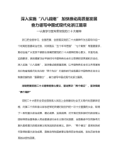 深入实施“八八战略”加快推动高质量发展奋力谱写中国式现代化浙江篇章—认真学习宣传贯彻党的二十大精神浙江把全面学习、全面把握、全面落实党的二十大精神作为当前和今后一个时期的首要政治任务,对照落实“五个牢牢把握”“七个聚焦”等重要要求,推动全省广大党员干部群众准确把握党的二十大精神的核心要义、丰富内涵、实践要求,深刻理解习近平新时代中国特色社会主义思想的世界观和方法论,深入实施“八八战略”,加快推动高质量发展,以中国特色社会主义共同富裕先行和省域现代化先行即“两个先行”打造新时代全面展示中国特色社会主义制度优越性的“重要窗口”,奋力谱写中国式现代化浙江篇章。深刻把握党的二十大精神的核心要义,坚定捍...