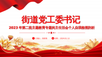 民主生活会自我检视剖析PPT红色实用街道党工委书记第二批主题教育个人发言材料-压缩