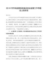 在XX市市场监管系统食品安全监管工作专题会上的讲话
