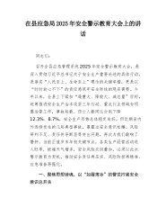 在2025年全县安全生产暨消防救援工作高质量发展专题部署会上的讲话同志们:今天,在市委、市政府召开全市安全生产暨消防救援工作高质量发展推进视频会议之后,我们立即召开全县的专题部署会,主要任务是深入学习贯彻总书记关于安全生产重要论述和视察我省时的重要讲话精神,全面落实上级会议的各项决策部署,结合我县实际,对当前和今后一个时期的安全生产及消防救援工作进行再动员、再安排、再压实。刚才,我们共同听取了市里的统一部署,要求明确,任务具体,我们必须不折不扣地抓好贯彻落实。安全生产,责任重于泰山;消防安全,事关人民福祉。做好这项工作,是我们必须扛起的重大政治责任,是推动全县经济社会高质量发展的基本前提,更是...