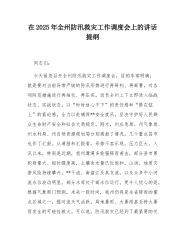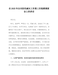 在2025年全市安全生产(防灾减灾救灾)委员会第三次全体会议上的讲话同志们:今天,我们召开市安全生产(防灾减灾救灾)委员会第三次全体会议,主要任务是深入学习贯彻总书记关于安全生产、防灾减灾救灾的重要论述和重要指示批示精神,总结上半年工作,分析当前形势,部署下一阶段重点任务,全力保障人民群众生命财产安全和社会大局稳定。刚才,我们观看了典型事故案例、精准执法警示片和安全生产月活动宣传片,市安委办、市消防救援局、市住房城乡建设局分别通报了有关情况,提出了下一步工作安排意见,相关县区也作了汇报发言,讲得都很好,关键是要抓好落实。下面,我再强调几点意见。一、肯定成绩,正视问题,切实增强做好安全生产和防灾...
