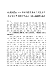 在县安委会2024年第四季度全体成员暨元旦春节假期安全防范工作会上的主持词及讲话