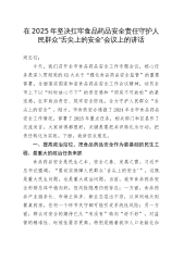 在县安委会2024年第四季度全体成员暨元旦春节假期安全防范工作会上的主持词及讲话同志们:今天,我们召开县安委会2024年第四季度全体成员暨元旦春节假期安全防范工作会议,主要目的是传达学习习近平总书记、李强总理以及中央省市关于安全生产、森林防灭火重要批示指示精神,聚焦重点领域、重点工作,再安排、再部署、再落实,坚决守住安全底线,全力维护社会大局安全稳定。一、必须树牢底线思维,强化风险意识,时刻绷紧安全生产思想之弦安全是发展的前提,也是发展的基础。工作干得再好,一旦发生安全事故,都等于零,这类教训不少。今年,1月24日XX“X.XX”特别重大火灾事故,造成39人遇难,9人受伤。X省纪检监察机关对事...