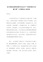 XX市委政法委常务副书记在全市“矛盾纠纷多元化解工程”工作推进会上的讲话同志们: 今天我们召开全市“矛盾纠纷多元化解工程”工作推进会,主要任务是深入贯彻落实上级关于平安建设、法治建设和社会治理的一系列决策部署,总结前段工作,分析当前形势,安排部署下一阶段重点任务,进一步凝聚共识压实责任、推动落实,全力以赴将这项基础工程、民生工程抓实抓好抓出成效,为全市经济社会高质量发展营造更加安全稳定的社会环境。昨天是正月十五,元宵佳节刚过我们就召开这次会议,也足见市委、市委政法委对这项工作的高度重视和紧抓快干的决心。 刚才,会议通报了近期全市“矛盾纠纷多元化解工程”推进的整体情况,既肯定了成绩,也指出了...