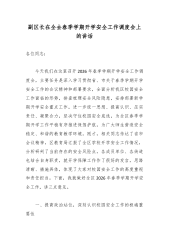 在XX区2026年春季开学安全工作暨开学准备工作会议上的讲话(精品)同志们:大家好!岁序更替,华章日新。我们刚刚度过了一个欢乐祥和的春节,带着对新春的美好祝愿,怀着对新学期的无限憧憬,今天我们齐聚一堂,召开全区2026年春季开学安全工作暨开学准备工作会议。这次会议的主要任务,是在深入传达学习省、市教育系统安全工作会议精神的基础上,全面部署新学期开局的各项重点工作,确保全区教育事业在新的一年里开好局、起好步。今天的会议,既是一次收心会,更是一次动员会、部署会。全区各校(园)长、机关各办公室、局直各单位以及民办教育机构的负责同志,共计260余人,共同参与这场“开学第一课”。希望大家迅速从“假期状态...
