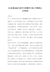 在XX市住房和城乡建设局全市住建领域“春节”期间安全生产工作部署会上的讲话同志们:今天,我们在这里召开全市住建领域春节期间安全生产工作部署会,主要任务是深入贯彻落实近期国家、省、市关于安全生产工作的一系列重要指示精神和决策部署,分析研判当前我市住建领域面临的安全生产形势,对春节期间的安全防范工作进行再强调、再部署、再落实。刚才,相关科室和中心的负责同志围绕各自业务领域进行了具体安排,提出了明确要求,我都同意,请大家务必抓好贯彻执行。下面,我再讲几点意见。一、提高思想认识,准确把握当前严峻复杂的安全形势安全生产是民生大事,一丝一毫不能放松。2026年是实施“十五五”规划的开局之年,更是全国安全生...