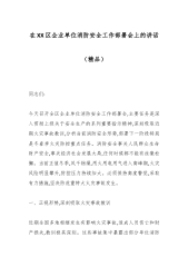 在XX区企业单位消防安全工作部署会上的讲话(精品)