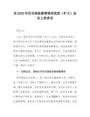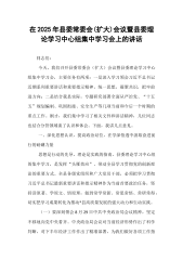 在2025年县委常委会(扩大)会议暨县委理论学习中心组集中学习会上的讲话同志们:今天,我们召开县委常委会(扩大)会议暨县委理论学习中心组集中学习会,主要任务有两项:一是深入学习领会习近平总书记近期系列重要讲话和重要指示精神,统一思想,凝聚共识,把牢前进方向;二是结合我县实际,专题研究部署全面从严治党、“十五五”规划编制、巩固衔接、安全生产等几项当前和今后一个时期的重点工作。刚才,我们集中学习了相关文件和讲话精神,几位同志也结合分管领域谈了认识和体会。下面,我讲几点意见。一、深化思想认识,提高政治站位,在学深悟透中汲取奋进前行的磅礴力量思想是行动的先导,理论是实践的指南。县委理论学习中心组的集中...