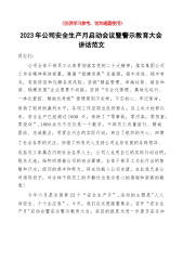 2023年公司安全生产月启动会议暨警示教育大会讲话集团企业