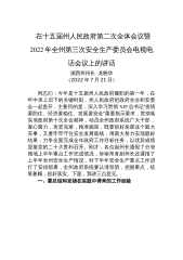 在十五届州人民政府第二次全体会议暨2022年全州第三次安全生产委员会电视电话会议上的讲话(20220721)