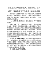 在全县2023年安全生产、应急管理、防灾减灾、森林防灭火工作会议上的讲话提纲刚才我们一起参加了全市2023年安全生产、应急管理、防灾减灾、森林防灭火工作会议,上级相关要求已经非常明确。我们还观看了《生命重于泰山》警示教育片。下面我讲几点工作意见。一、认清形势、提高认识,坚决扛起保一方平安的重大责任近期,国家、省、市相继召开安全生产、应急管理相关会议,要求进一步统筹发展和安全,狠抓安全生产责任和措施落实,健全安全风险分级管控和隐患排查治理双重预防机制,巩固安全生产专项整治三年行动成果,坚决维护人民群众生命财产安全。市委、市政府制发了《2023年安全生产和应急管理工作的意见》,提出了明确要求。我们...