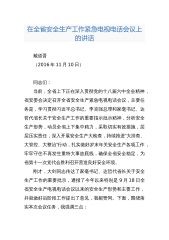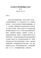 在全省安全生产警示教育视频会上的讲话黄强2016年9月1日同志们:近期,全省安全事故多发频发,安全生产形势十分严峻。为深刻汲取事故教训,进一步加强安全生产工作,按照林铎省长指示,今天召开全省安全生产事故警示教育视频会。刚才,大家观看了酒钢集团宏兴钢铁股份有限公司西沟矿“8·16”重大火灾事故、吉林省八宝煤业“3·29”特别重大瓦斯爆炸事故和庆阳市正宁县“11·16”重大道路交通事故的警示教育片,事故场景让人触目惊心,麻痹侥幸、非法违法、盲目施救等导致的悲剧一再重演。在对事故中死难职工表示沉痛哀悼的同时,我们更应该时刻铭记用生命换来的血的教训,决不能好了伤疤忘了疼,甚至伤疤还没好就忘了疼...