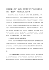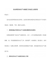 在全区“防风险保稳定”、汛期安全生产暨2022年第三季度安委会全体(扩大)会议上的讲话同志们:今天会议主要目的是深入贯彻落实省市防风险保稳定会议精神和6月22日全市汛期安全生产紧急电视电话会议精神,对我区下半年安全生产、应急管理工作进行安排部署。刚才,*同志传达了国家、省、市领导有关防汛救灾工作指示批示精神和全市汛期安全防范工作紧急电视电话会议精神,特区应急管理局通报了全区2022年上半年安全生产、应急管理和自然灾害工作开展情况,介绍了特区成立应急救援总指挥部及专项应急指挥部情况,有关部门和企业作了发言,参会的各位副区长也就自己分管领域的安全生产工作进行了安排,请大家认真抓好落实,下面,我再讲...