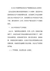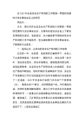 在2023年全县安全生产、消防安全、防汛抗旱和地质地震灾害防治工作会议上的讲话同志们:在今天全省安全生产暨防汛抗旱工作会议和全市安全生产、消防安全、防汛抗旱和地质地震灾害防治会议结束后我们紧接着召开全县安全生产、消防安全、防汛抗旱和地质地震灾害防治工作会议。主要目的就是迅速传达省市会议精神,安排部署全县当前以及今后一个时期的安全生产消防安全、防汛抗旱和地灾防范相关工作,为全县高质量发展提供良好环境保障。刚才县安委办、消安委办通报了全县近期安全生产、防汛抗旱和消防安全形势,对下一步的工作提出了很好的工作建议。**、**同志分别对今年地质地震灾害防治和防汛抗旱工作讲了非常具体、非常细致的要求,我都...