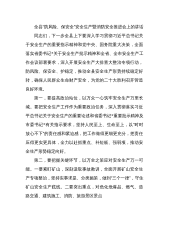 在集团公司贯彻落实省安委会安全生产领域风险隐患大排查大整治集中行动暨严厉打击盗采矿产资源专项行动部署视频会上的讲话山西焦煤霍州煤电汾源煤业公司总经理王宇魁(2021年12月26日)同志们:刚才,省安委会视频会议全面安排部署了全省安全生产领域风险隐患大排查大整治集中行动暨严厉打击盗采矿产资源专项行动。下面,我就贯彻落实会议精神,讲三点意见。一、提高政治站位,一体推进落实今天会议和12月17日集团公司安委会全体(扩大)会议精神孝义市“12•15”非法盗采煤炭资源引发透水事故,受到D中Y国务院和省委省政府的高度重视,引起社会各界的高度关注,对我省安全生产局面、经济社会发展造成重大影响,李克强总理专门...