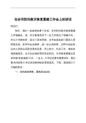 在全市防汛抗旱工作会议上的讲话这次会议的主要任务是,深入学习贯彻X工作的重要指示精神,认真贯彻落实X电视电话会议精神,分析面临的形势任务,安排部署今年防汛抗旱工作任务。第一,坚持警字当头,拧成“一股绳牢固树立和践行生命至上、安全第一理念,坚守不伤人、不死人、少损失这条底线,坚持警钟长鸣,未雨绸缪,防范未然。一是面对形势要警惕。俗话说“大疫之后有大灾”,新冠肺炎的全球大流行、防汛抗旱,与气候、环境都是分不开的。从全球看,气候变化异常,突发性、极端性、不可预见性天气日益增多。从全国看,专家预测,今年我国气象水文年景总体XX。自20XX年以来,XX年没有发生流域性大洪水,今年发生大洪水几率持续上升。...