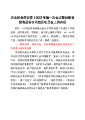 在全区食药安委2022年第一次会议暨创建省级食品安全示范区动员会上的讲话刚才,xx同志就省级食品安全示范区创建工作进行了详细安排,讲的很全面、很到位,请大家认真抓好落实。xx、xx和xx同志分别作了表态发言,认识到位、措施有力,我完全同意。下面,就抓好食品药品安全工作,我讲几点意见:一、提高站位、强化担当,切实增强做好食品药品安全工作的责任感和紧迫感食品药品安全关系到人民群众的身体健康和生命安全,事关全区经济高质量发展和社会和谐稳定。党的十九大以来,党中央、国务院高度重视食品药品安全工作,把食品药品安全摆到治国理政的重要位置。XJP总书记强调,要用最严谨的标准、最严格的监管、最严厉的处罚、最严...
