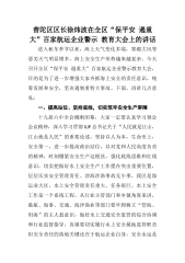 在全区“防风险保稳定”、汛期安全生产暨2022年第三季度安委会全体(扩大)会议上的讲话同志们:今天会议主要目的是深入贯彻落实省市防风险保稳定会议精神和6月22日全市汛期安全生产紧急电视电话会议精神,对我区下半年安全生产、应急管理工作进行安排部署。刚才,*同志传达了国家、省、市领导有关防汛救灾工作指示批示精神和全市汛期安全防范工作紧急电视电话会议精神,特区应急管理局通报了全区2022年上半年安全生产、应急管理和自然灾害工作开展情况,介绍了特区成立应急救援总指挥部及专项应急指挥部情况,有关部门和企业作了发言,参会的各位副区长也就自己分管领域的安全生产工作进行了安排,请大家认真抓好落实,下面,我再讲...