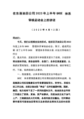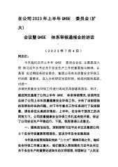 公司总经理在公司2023年上半年QHSE委员会(扩大)会议暨QHSE体系审核通报会的讲话