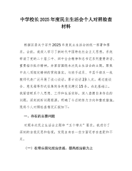 XX公司党委委员、纪检监督室主任2025年度民主生活会个人对照检查材料(精品)根据市委和公司党委关于召开2025年度民主生活会的统一部署,本人严格按照会议主题和要求,在会前深入学习了习近平新时代中国特色社会主义思想、党的二十届三中、四中全会精神以及习近平总书记关于作风建设的重要论述。通过与党委班子成员、分管部门及基层党员干部开展深入的谈心谈话,并广泛征求基层党支部和一线职工的意见建议,共收集到关于监督执纪精准度、服务基层深度等方面的意见建议XX条。在此基础上,我紧扣会议主题,对照“五个带头”的具体要求,深入查摆自身存在的问题,深刻剖析问题根源,并明确了今后的努力方向和整改措施。现将个人对照检查...