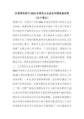 区委领导班子2025年度民主生活会对照检查材料(五个带头)根据中央、市委关于开好2025年度党员领导干部民主生活会的统一部署和要求,区委领导班子紧扣“深入学习贯彻习近平新时代中国特色社会主义思想,全面贯彻落实党的二十届四中全会精神,以大攻坚战、持久战的决心和恒心,锲而不舍落实中央八项规定精神,推进作风建设常态化长效化,以优良作风凝心聚力、真抓实干,奋力开创中国式现代化建设新局面”主题,在深入学习研讨、广泛征求意见、普遍谈心谈话的基础上,严格对照“五个带头”要求,联系区委班子自身建设和区域发展实际,深入查摆问题、深刻剖析根源、明确整改方向。现将区委领导班子对照检查情况报告如下。一、上年度民主生活...